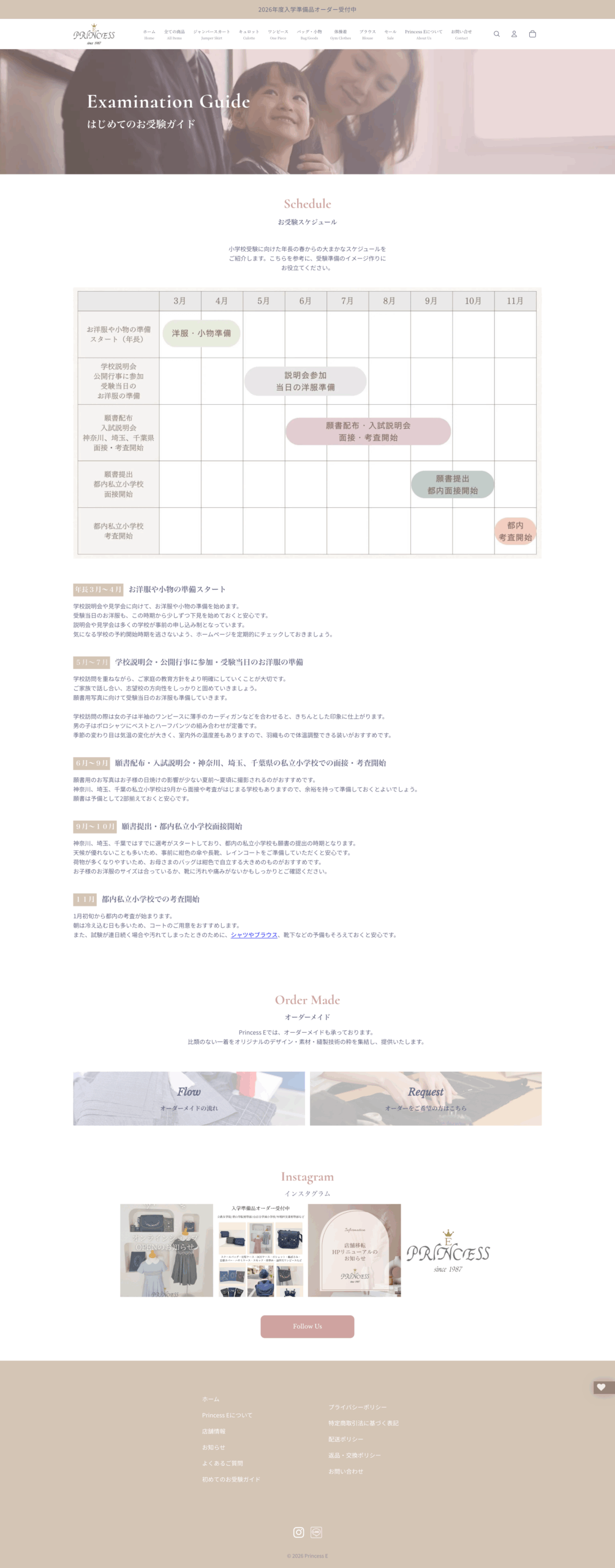 幼稚園・小学校受験のお洋服を作成・販売されているPrincess E様より、ECサイト兼ホームページの制作をご依頼いただきました。